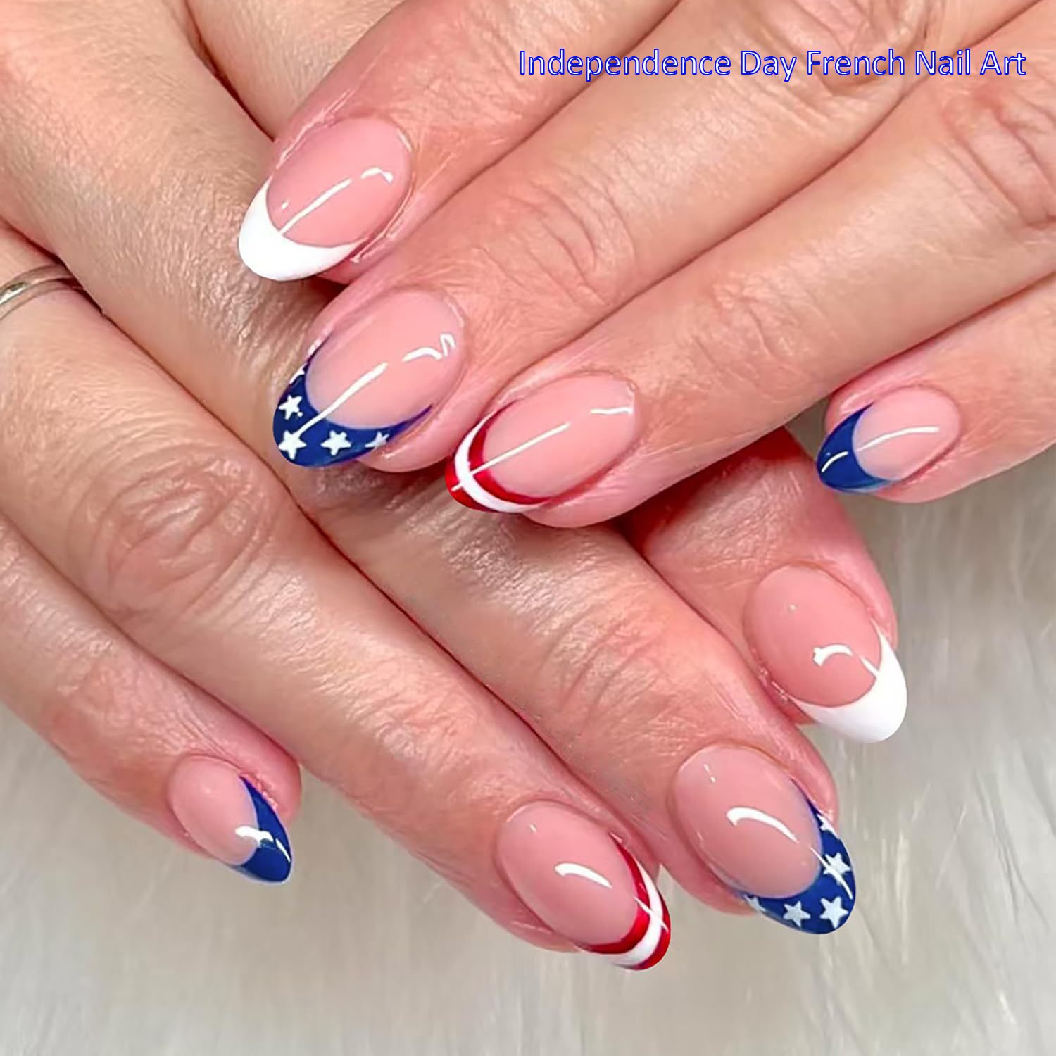 Independence Day French-style short square finished press-on nails with American flag design, cross-border false nail stickers