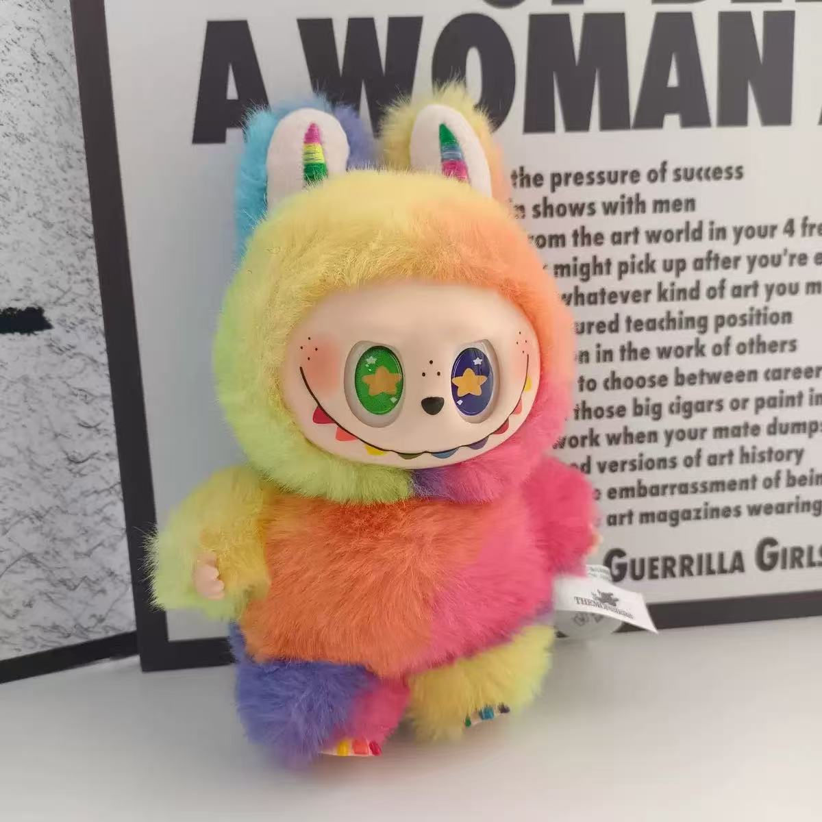 – Facial Craftsmanship: Retains Labubu’s signature round eyes and small pointed teeth design, with pupils incorporating heart and star elements; the blush and tip of the nose colors echo the rainbow theme, giving the expression a lively and playful feel.